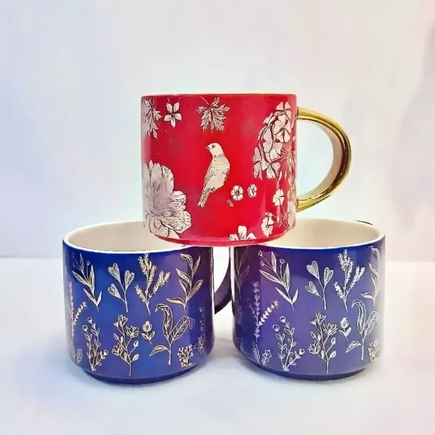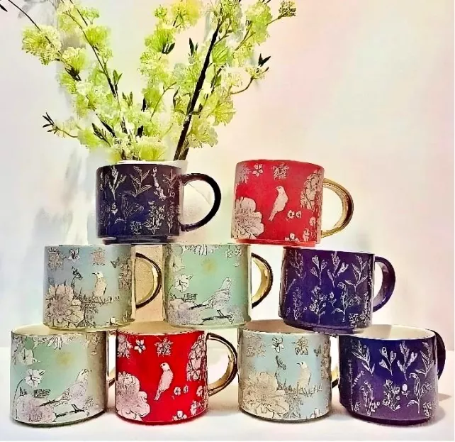 See keraamiline kruus, millel on elektroplekkitud kuldkäepide, mis on hoolikalt meisterdatud kleebistega, kehastab ainulaadset võlu, mis on inspireeritud loodusest. Ükskõik, kas see on õitsevate lillede õrnad tekstuurid, krapsakate lindude erksad vormid või looduslike värviplokkide kütkestavad mustrid, jäädvustab kruus delikaatselt taimestiku, loomastiku ja erksate värvide kingitusi. Iga stiili jaoks on kruusi käepide kohandatav. Kullatud versioon paistab rikkaliku kuldse tooniga, mis sarnaneb 18K kullaga, lisades keerukuse. Seda saab kohandada ka teie lemmikvärvi järgi.