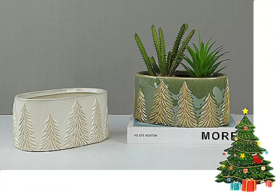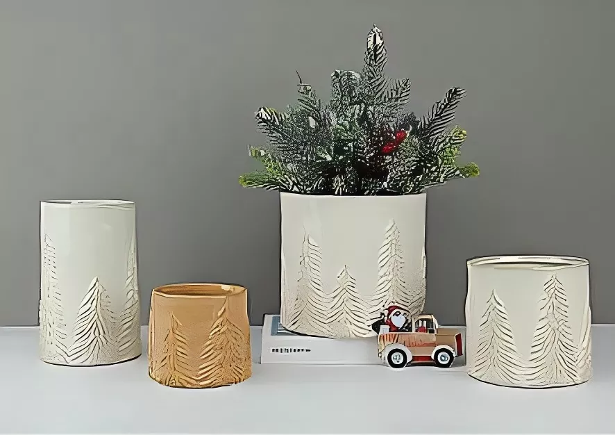Reljeefse jõulumänni vaas kasutab peamise disainielemendina klassikalist männipuu mustrit, mis esindab vastupidavust ja pikaealisust, mis on kestev teema talvel ja pühadehooajal. Reljeeftrükk mitte ainult ei suurenda visuaalset sügavust, vaid tekitab ka käsitöö soojust ja kunstilist kogumisväärtust, ületades kaugelt tavalised plastist kaunistused. Lisaks on praktiliste vormide hulgas klassikalised silindrilised, stabiilsed ruudukujulised alused ja elegantsed ovaalsed kujundused, mida saab kasutada iseseisvalt kunstiteostena või suurepäraselt taimede juurde. Tootesarja osana saab neid erineva suuruse ja kujundusega lillepotte vabalt kombineerida ja paigutada (näiteks lehvikukujuliselt või ridadena), et luua kihiline ja visuaalselt vapustav lauamaastik.