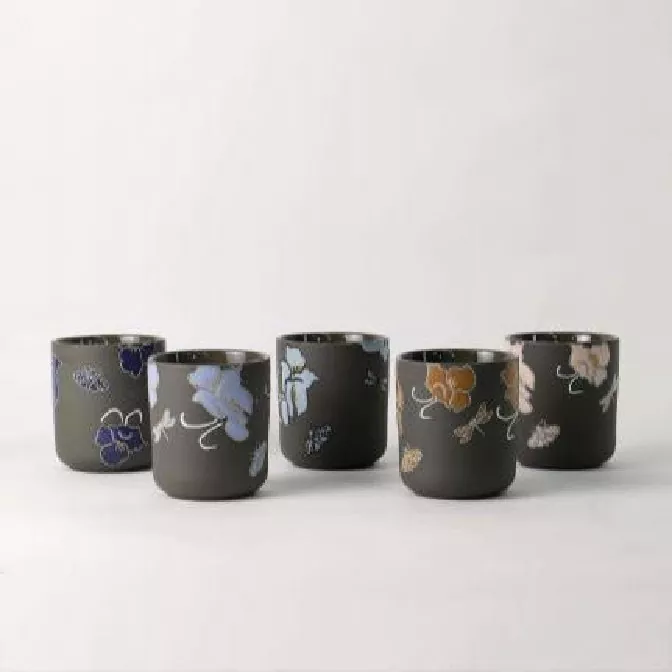 Floral Whisper käsitsi maalitud kunstiküünlaalus ühendab idamaise esteetika praktilise disainiga. Valik erksaid värve, sealhulgas soe kollane, vaikne sinine, elegantne hall, sügavlilla ja soe pruun, ulatub erksast kuni tagasihoidlikuni, mis on hõlpsasti kohandatav iga ruumi ja meeleoluga. Küünlaaluse korpuses on kasutatud glasuurialuseid maalimistehnikaid traditsiooniliste lille- ja murumotiivide jaoks, mis on kaunistatud kuldfooliumiga. Disain on ajatu ja keskkonnasõbralik. Keraamiline korpus on pehme, mugav käes hoida ja pakub suurepärast soojusisolatsiooni. Disain ammutab inspiratsiooni klassikalistest Jaapani elementidest, õhkab elegantsi ja võlu keset elavat loodusmaailma. Tass on väike ja peen, mahuga, mis sobib tee, kohvi või magustoitude jaoks. Seda saab kasutada üksi igapäevaelu kaunistamiseks või kombineerida mitme tassiga, et rahuldada paindlikult perekondlike külaliste või isikliku naudingu vajadusi.