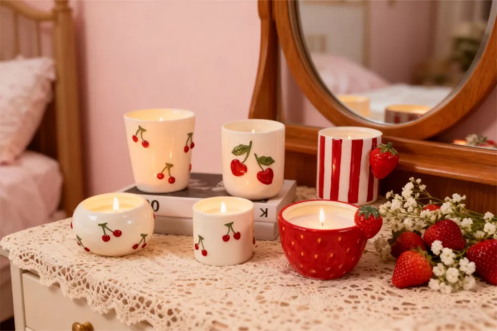 BYF-i Super Adorable Ceramic Candle Jar sarjas on tipptasemel käsitsi valmistatud keraamilised küünlapurgid, millel on "üliarmsa" kujundusstiil. Disainid sisaldavad klassikalisi magusaid elemente, nagu punased kirsid, kolmemõõtmelised vibud ja maasikad, millel on sile glasuur ja mitmekesised kujundid. See on valmistatud ohututest ja keskkonnasõbralikest materjalidest, on suurepärase kuumakindlusega ning sobib ideaalselt tavaliste tahtide ja erinevate vahaalustega, muutes sellest nii kvaliteetse küünlaanuma kui ka kunstipärase dekoratiiveseme, mis täiustab teie kodu sisekujundust.